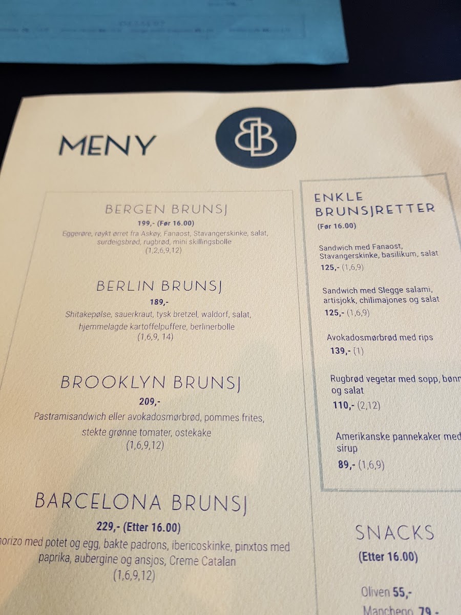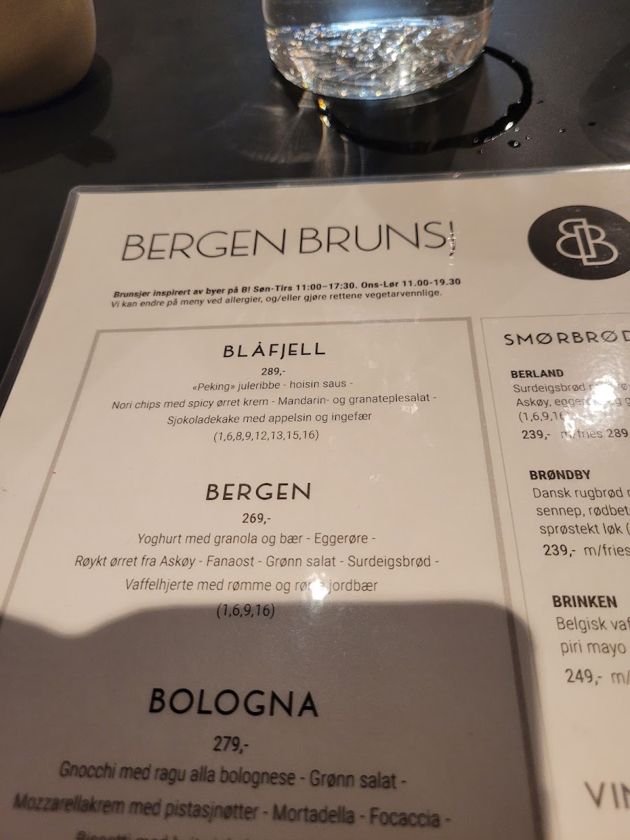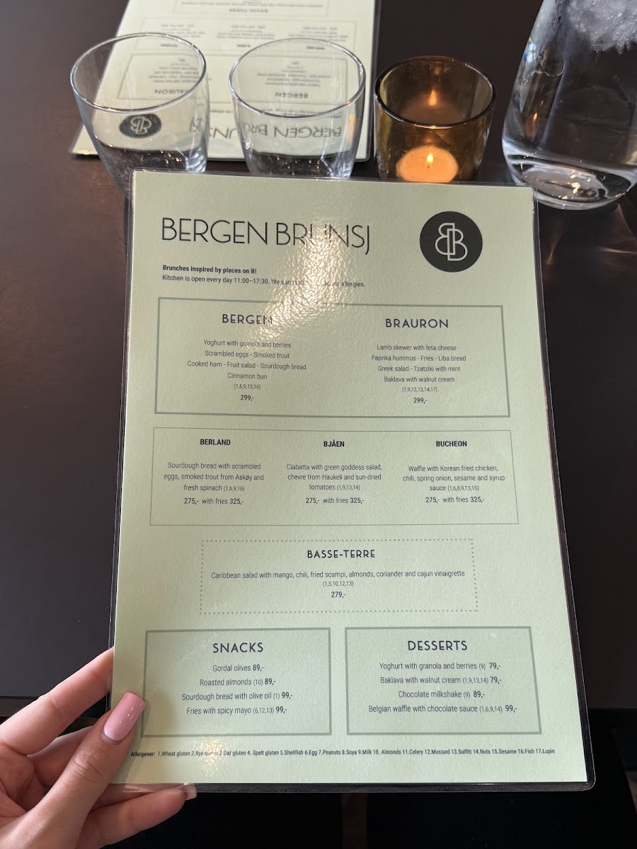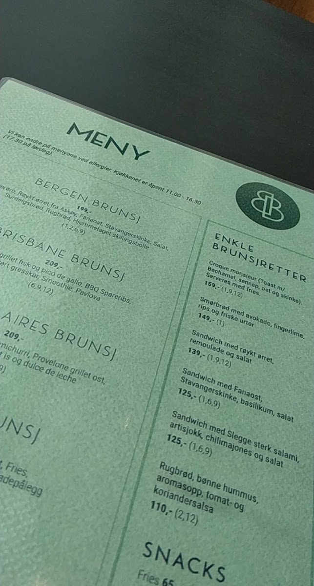 Each dish and drink is thoughtfully crafted, offering a wonderful balance of taste and quality that represents both local and international influences. Whether you're looking for a light snack or a hearty meal, the menu at Bergen Brunsj provides plenty of delicious options to satisfy your cravings.
